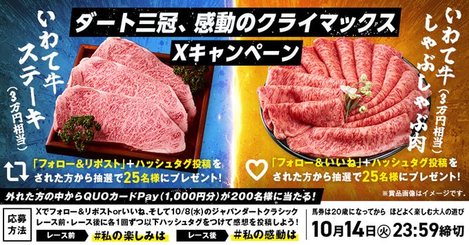 ③レース前・レース後に各1回ずつ、以下ハッシュタグをつけて三冠競走への期待と感動を投稿で応募!