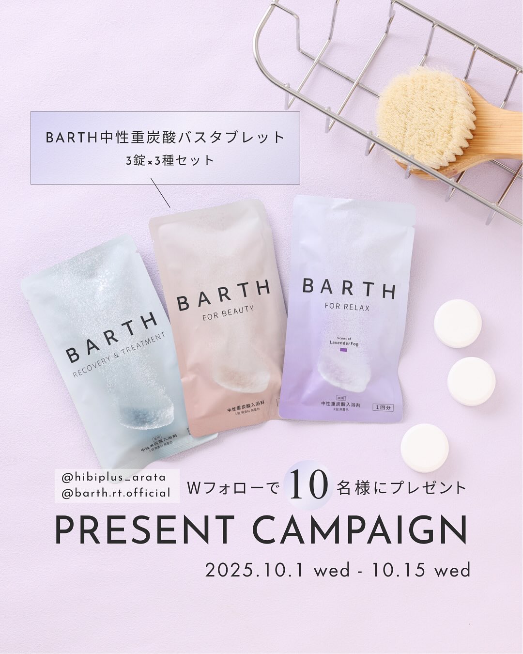 賞品:BARTH中性重炭酸入浴料3錠タイプ×3種(10名様)