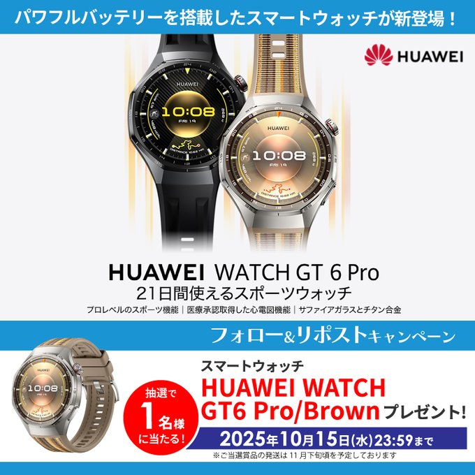 賞品:HUAWEI WATCH GT 6 Pro(1名様)