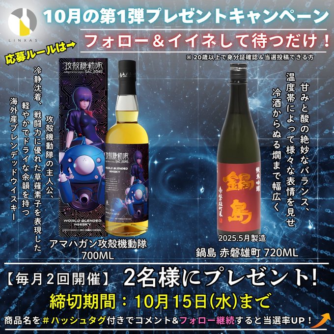 賞品:#アマハガン #鍋島 のいずれかの #高級酒(2名様)