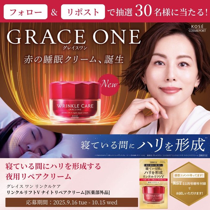 賞品:グレイスワンの新商品 夜用リペアクリーム(30名様)