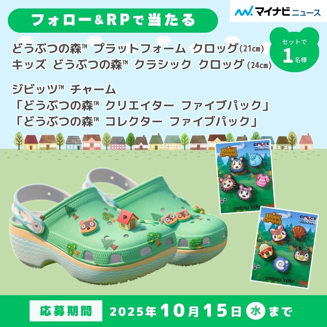 賞品:どうぶつの森™×Crocs™ コラボレーションアイテム プラットフォームクロッグやシビッツチャームの4点セット(1名様)