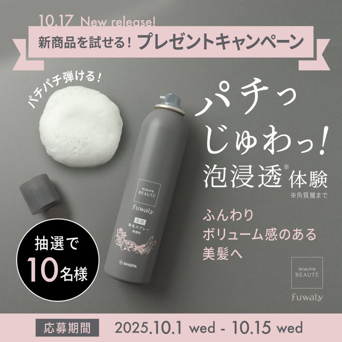 賞品:スカルプD ボーテ フワリー スプレータイプの薬用育毛剤(10名様)
