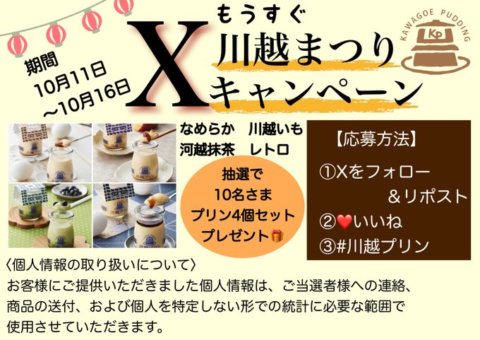 【X懸賞】川越プリン4種セットを10名様にプレゼント