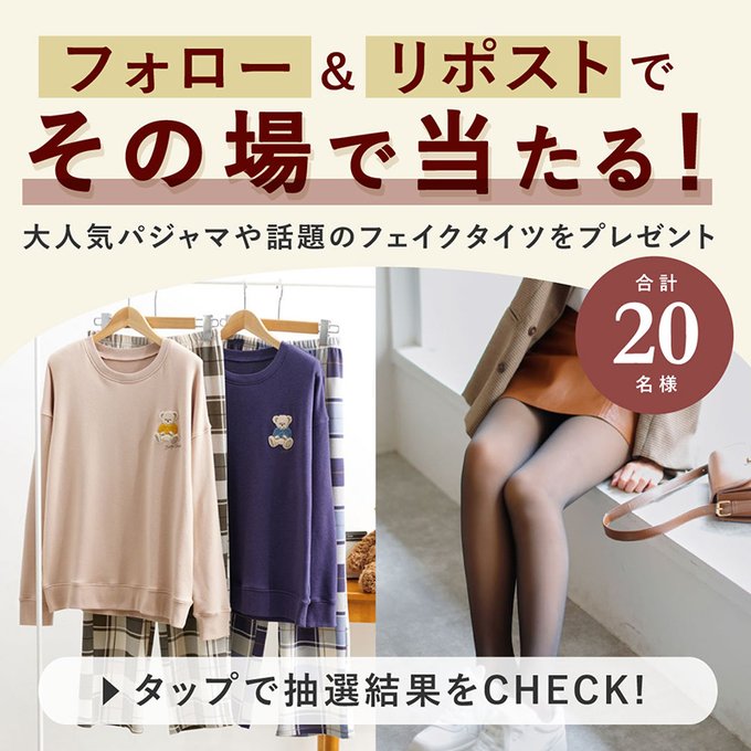 賞品:新作パジャマ、フェイクタイツ、トラベルポーチ(合計20名様)