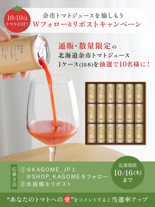 @KAGOME_JPと@SHOP_KAGOMEをフォロー&キャンペーン対象ポストをリポストしてご応募ください。