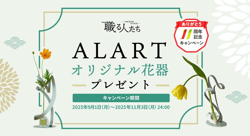 ALART 一輪挿し「TWIST(L)」を10名様にプレゼント 2025.10.14三菱電機 CME‐ありがとう11周年記念キャンペーン 賞品:一輪挿し「TWIST(L)」(10名様) 締切:2025年11月3日(月)たまったポイントでご応募ください。※詳細はキャンペーンページにてご確認ください。応募はこちらから