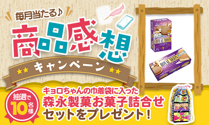賞品:キョロちゃんの巾着袋に入った 森永製菓商品詰め合わせ(10名様)