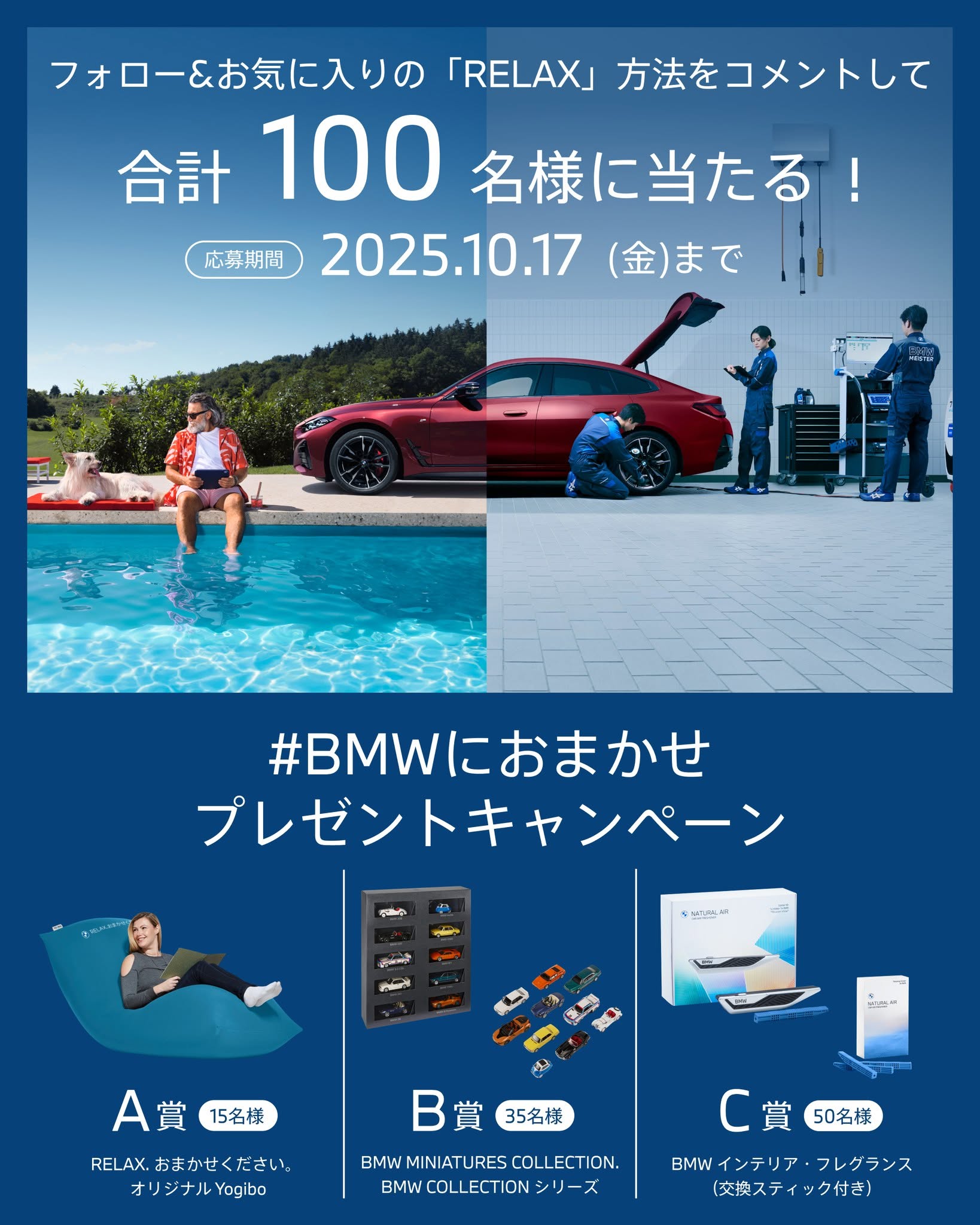 BMW Service Loungeアカウント ( @bmwservice_japan ) をフォロー&キャンペーン投稿にコメントで、合計100名様にBMWオリジナルグッズが当たる!