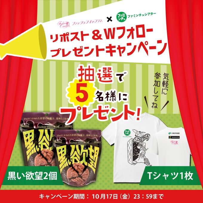 賞品:黒い欲望2個とファミンチュシアターT シャツ1枚(5名様)