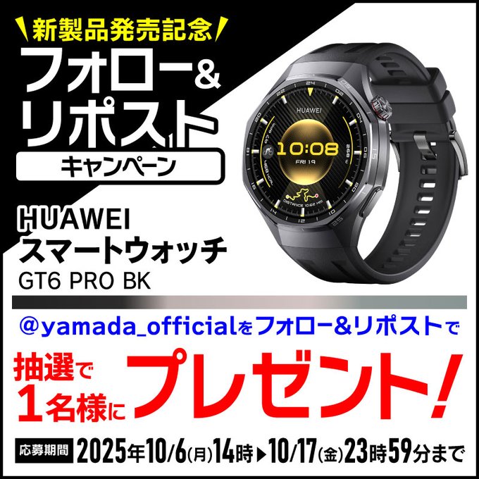賞品:HUAWEI・ スマートウォッチ GT6 PRO BK(1名様)