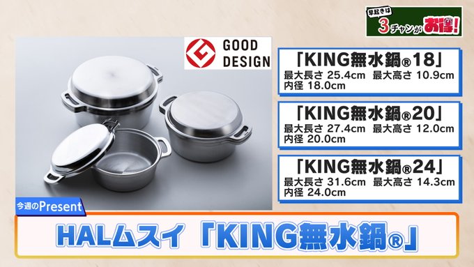 賞品:HALムスイ「KING無水鍋®」(1名様)