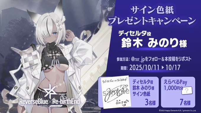 賞品:鈴木みのりさんサイン色紙、えらべるPay1,000円分(合計10名様)