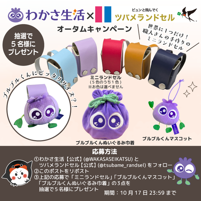 @WAKASASEIKATSUと@tsubame_randselをフォロー&キャンペーン対象ポストをリポストしてご応募ください。
