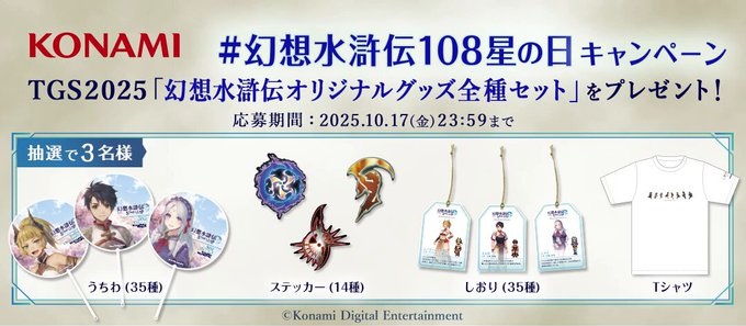 賞品:東京ゲームショウ2025で配布した 幻想水滸伝オリジナルグッズの全種類セット(3名様)