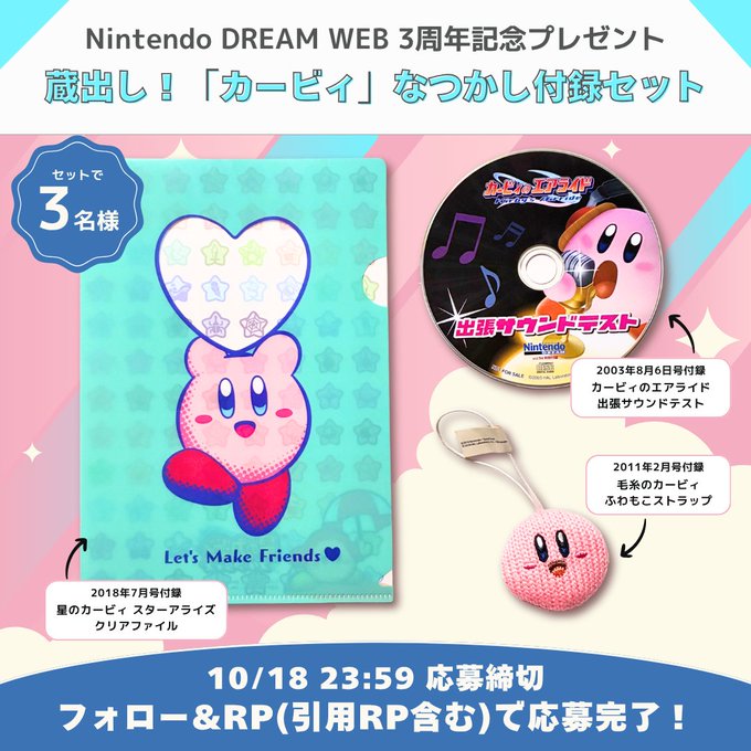 賞品:ニンテンドードリームの懐かし「カービィ」付録セット(3名様)