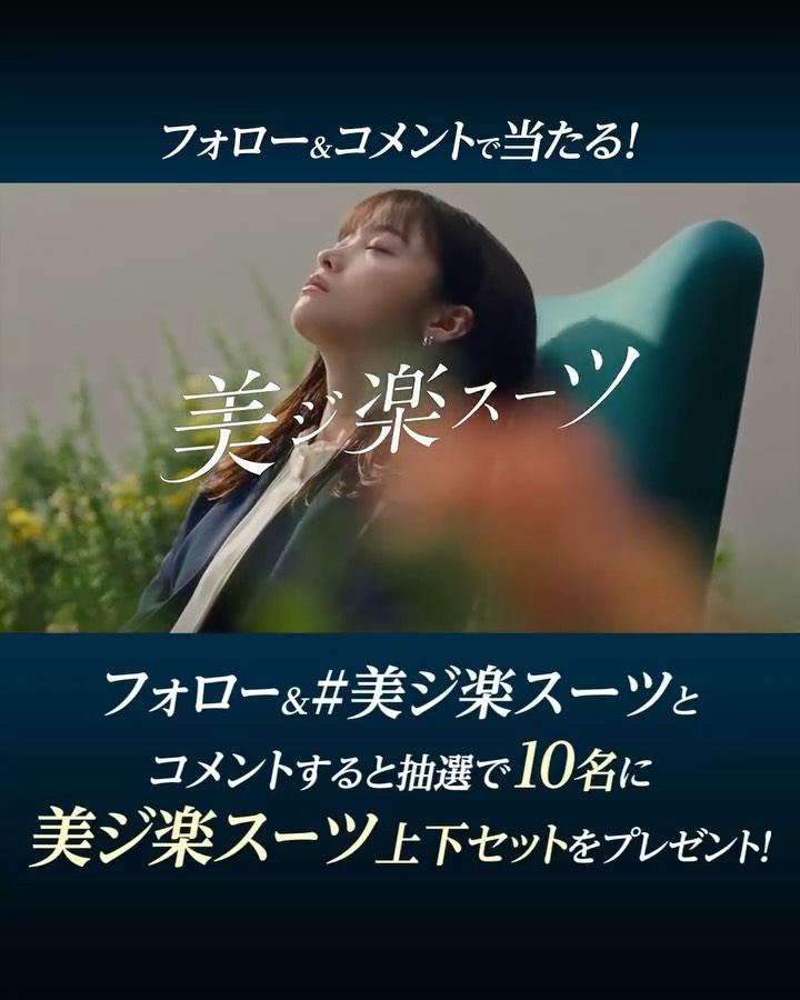 【Instagram懸賞】美ジ楽スーツを10名様にプレゼント 2025.10.16洋服の青山‐美ジ楽スーツ プレゼントキャンペーン 賞品:美ジ楽スーツ(10名様) 締切:2025年10月19日(日)フォロー&コメントでご応募いただいた方の中から抽選で10名様に【美ジ楽スーツ】をプレゼント!※詳細はキャンペーンページにてご確認ください。応募はこちらから