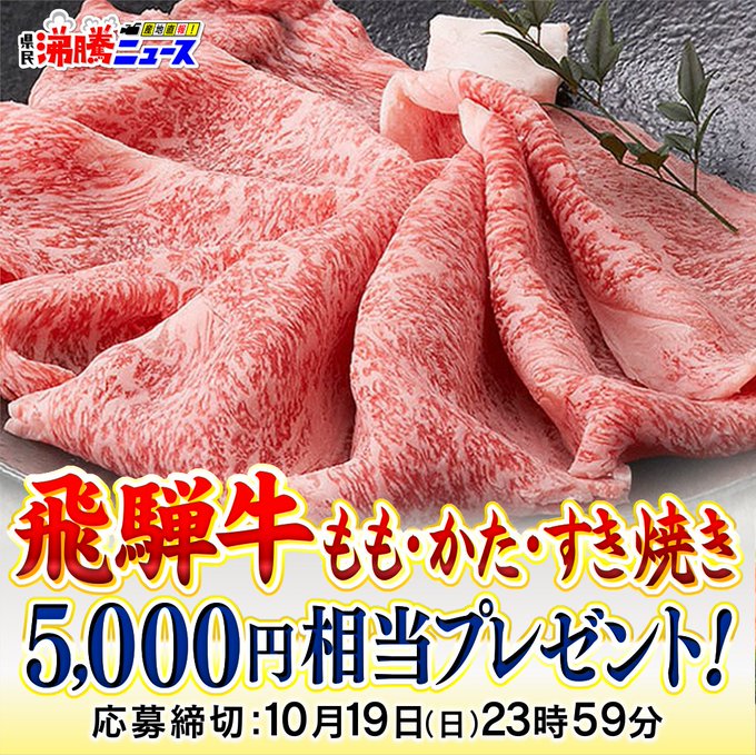 【X懸賞】飛騨牛 もも・かた・すき焼き5,000円相当を2名様にプレゼント 2025.10.16旬感LIVEとれたてっ!‐プレゼントキャンペーン 賞品:飛騨牛 もも・かた・すき焼き5,000円相当(2名様) 締切:2025年10月19日(日)応募方法 ①番組公式Xをフォロー ②投稿をリポストまたは引用リポスト※詳細はキャンペーンページにてご確認ください。応募はこちらから
