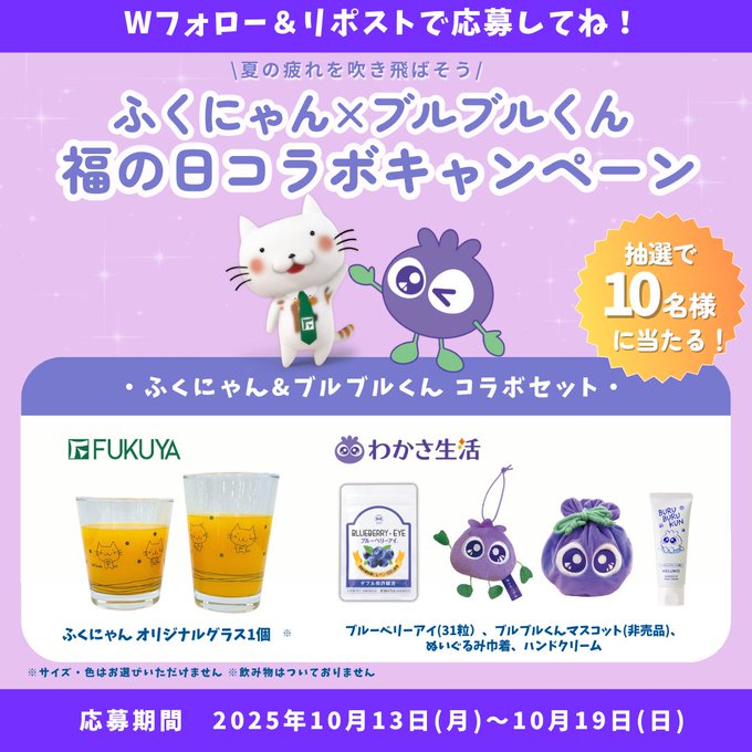 @fukuya_officialと@buru_buru_kunをフォロー&キャンペーン対象ポストをリポストしてご応募ください。