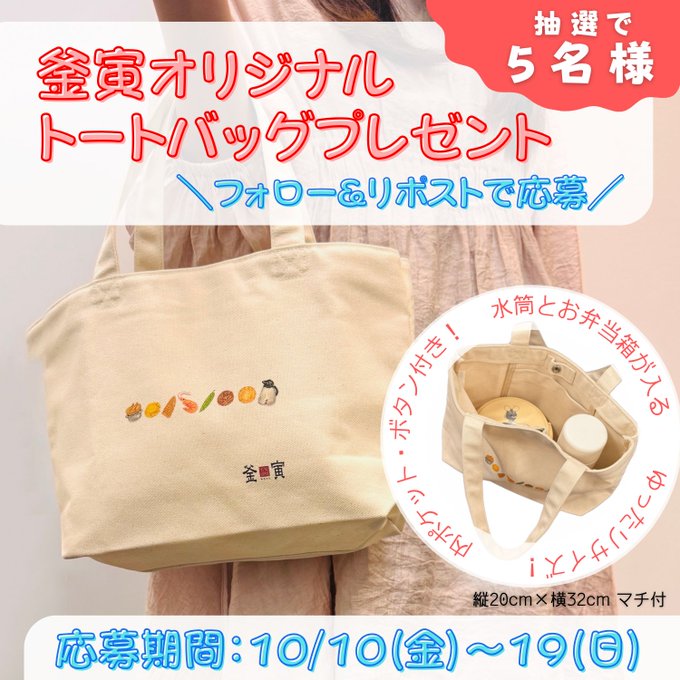 【X懸賞】釜寅オリジナル「トートバッグ」を5名様にプレゼント