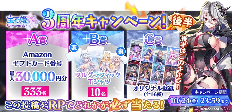 宝石姫 Reincarnation公式X(Twitter)アカウントをフォロー&キャンペーン対象ポストをリポストして、記載されているURLからご応募ください。