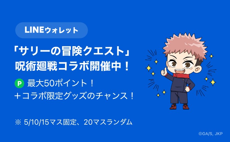 LINEお得まとめ‐「サリーの冒険クエスト」呪術廻戦コラボ開催中!