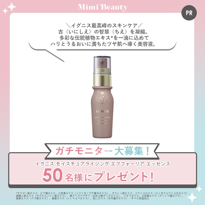 賞品:イグニス モイスチュアライジング エフフォーリア エッセンス(50名様)