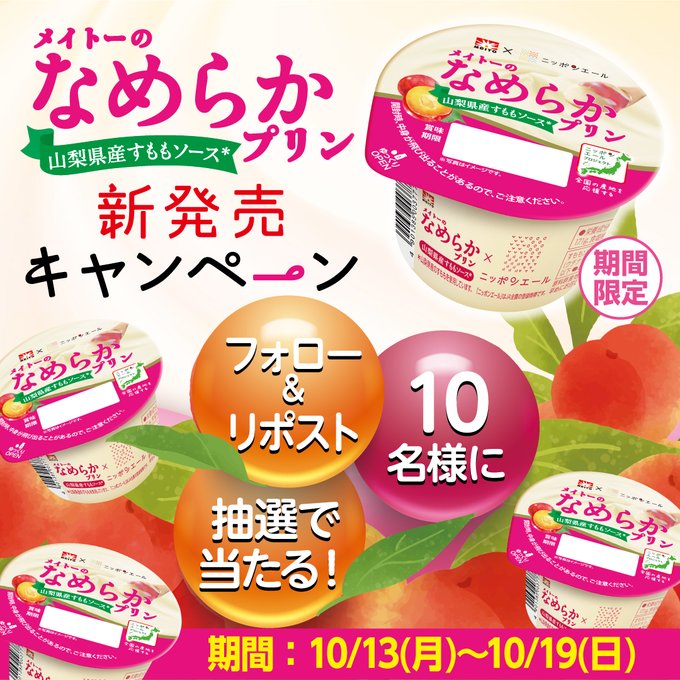 賞品:メイトーのなめらかプリン山梨県産すももソース(10名様)