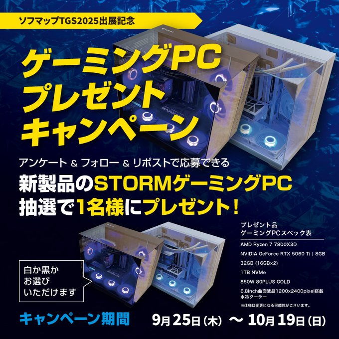 賞品:STORMゲーミングパソコン(1名様)