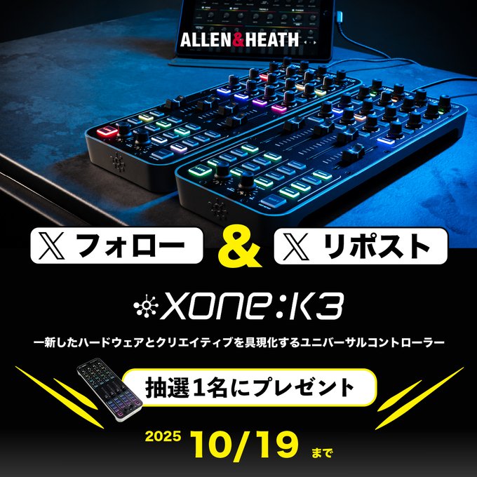 賞品:Allen & Heath 新製品『Xone:K3』(1名様)