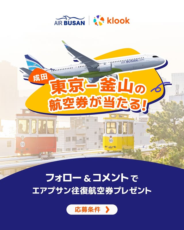 賞品:東京(成田)⇄釜山 往復航空券(1名様)