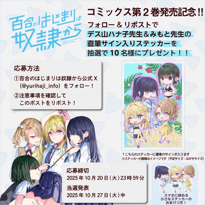賞品:デス山ハナ子先生&みもと先生の直筆サイン入りステッカー(10名様)