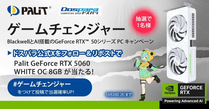 賞品:Palit GeForce RTX5060 WHITE OC 8GB(1名様)