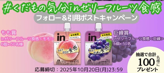 賞品:inゼリーフルーツ食感 6個(100名様)