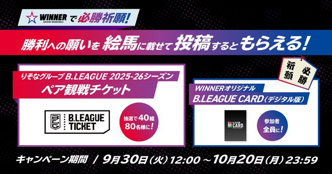 スポーツくじ WINNER‐B.LEAGUE開幕記念🏀WINNERで必勝祈願キャンペーン