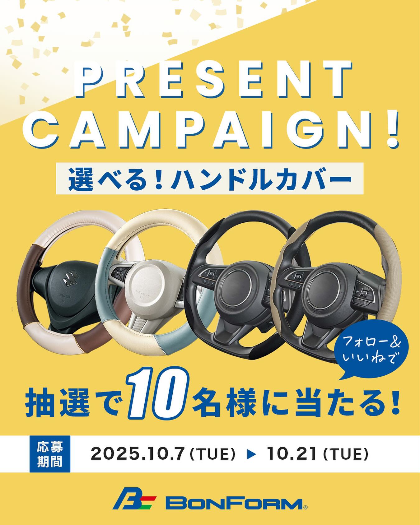 【Instagram懸賞】ハンドルカバーを10名様にプレゼント 2025.10.19ボンフォーム‐フォロー&いいねキャンペーン 賞品:ハンドルカバー(10名様) 締切:2025年10月21日(火)応募方法: 1. 公式Instagramアカウントをフォロー 2. 対象の投稿に「いいね!」※詳細はキャンペーンページにてご確認ください。応募はこちらから
