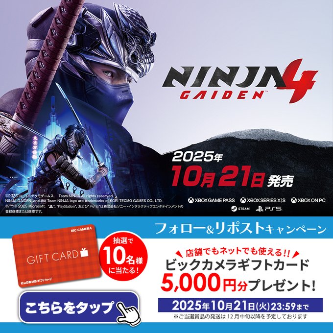 賞品:ビックカメラギフトカード5,000円分(10名様)