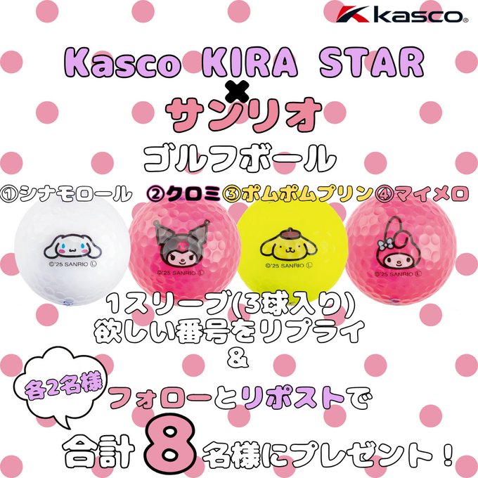 【X懸賞】キャスコ KIRA STAR×サンリオ ゴルフボール 1スリーブを8名様にプレゼント 2025.10.19ヨドバシ 梅田店‐プレゼントキャンペーン 賞品:キャスコ KIRA STAR×サンリオ ゴルフボール 1スリーブ(8名様) 締切:2025年10月21日(火)👉フォロー&リポスト👉欲しい番号をリプライ✍️※詳細はキャンペーンページにてご確認ください。応募はこちらから
