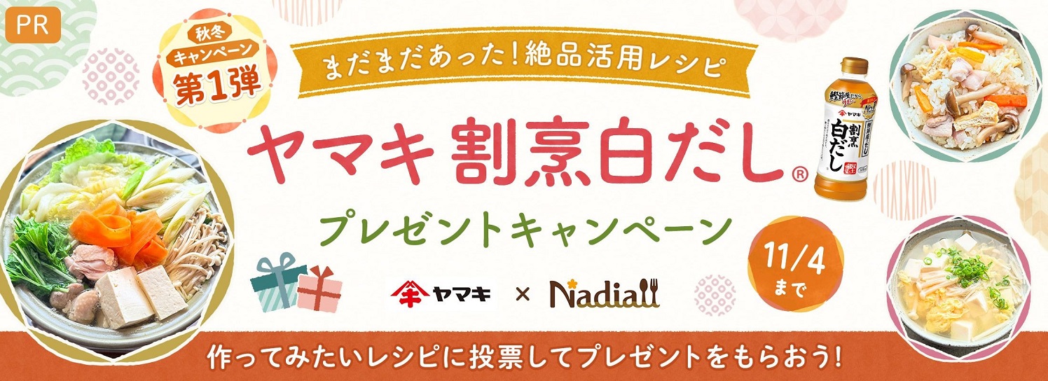 Nadia‐絶品活用レシピ「ヤマキ 割烹白だし®」プレゼントキャンペーン