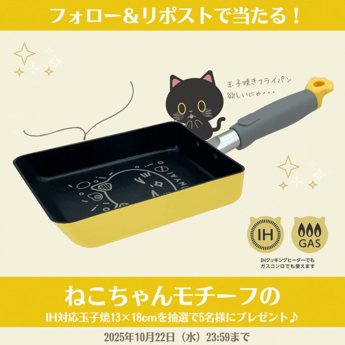 賞品:ねこちゃんモチーフのIH対応玉子焼(5名様)