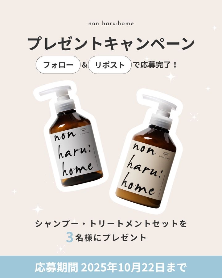 賞品:haruセカンドラインnon haru:homeのノンシリコンシャンプーとトリートメント(3名様)