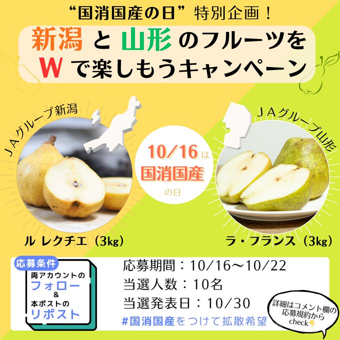 @JA_niigata_cyuoと@jagroupyamagataをフォロー&キャンペーン対象ポストをリポストしてご応募ください。