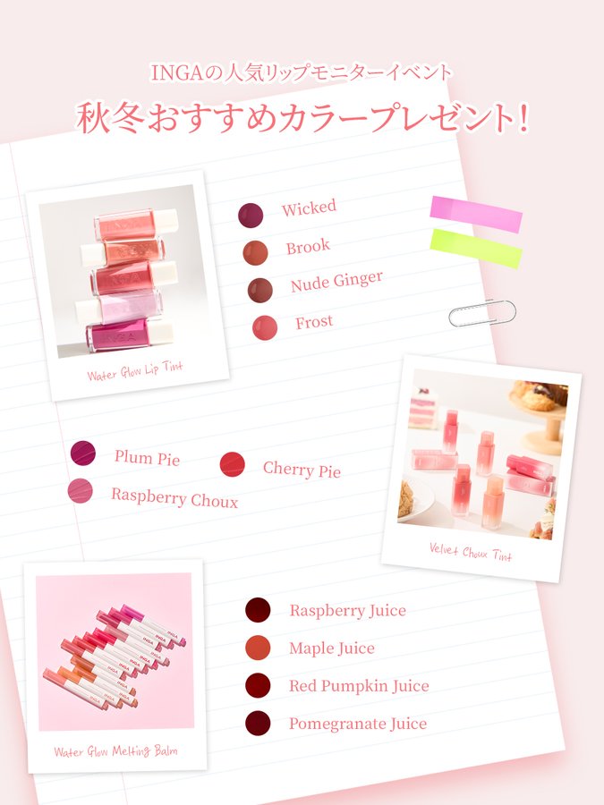 賞品:秋冬おすすめカラーのリップ(50名様)