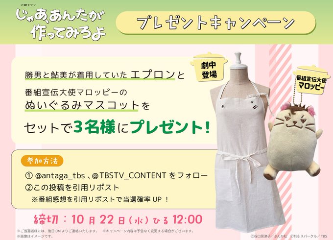 @antaga_tbs @TBSTV_CONTENT をフォロー&キャンペーン対象ポストをリポストしてご応募ください。