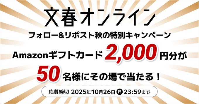 文春オンライン公式X(Twitter)アカウントをフォロー&キャンペーン対象ポストをリポストして、記載されているURLからご応募ください。