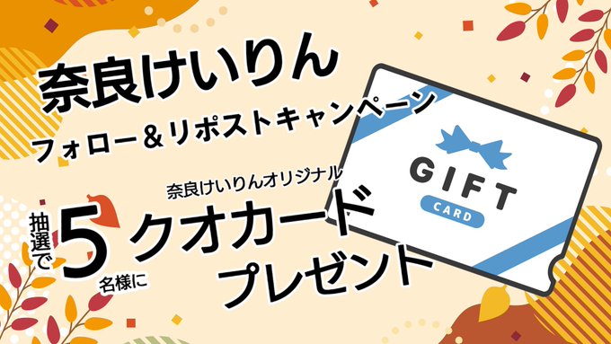 【X懸賞】クオカードを5名様にプレゼント 2025.10.21飛天ちゃん@奈良けいりん‐プレゼントキャンペーン 賞品:クオカード(5名様) 締切:2025年10月23日(木)1⃣アカウントをフォロー 2⃣引用リポスト(コメント付きだと嬉しい!)※詳細はキャンペーンページにてご確認ください。応募はこちらから