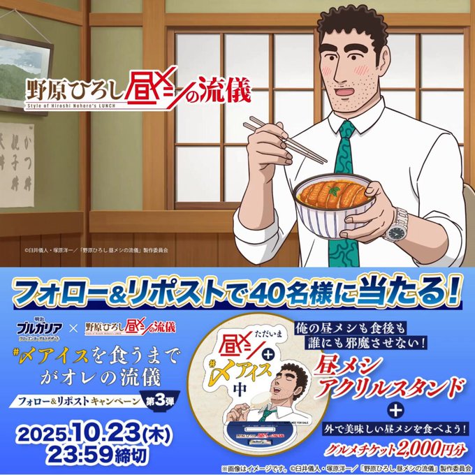 賞品:オリジナル“昼メシアクリルスタンド”&グルメチケット(40名様)