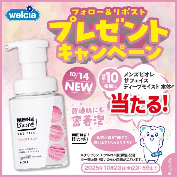 賞品:メンズビオレ ザフェイス ディープモイスト(10名様)