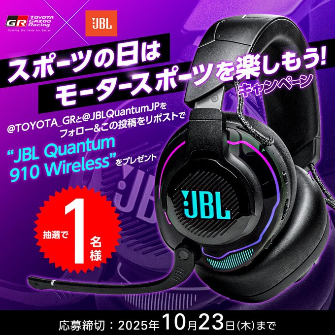 @TOYOTA_GRと@JBLQuantumJPをフォロー&キャンペーン対象ポストをリポストしてご応募ください。