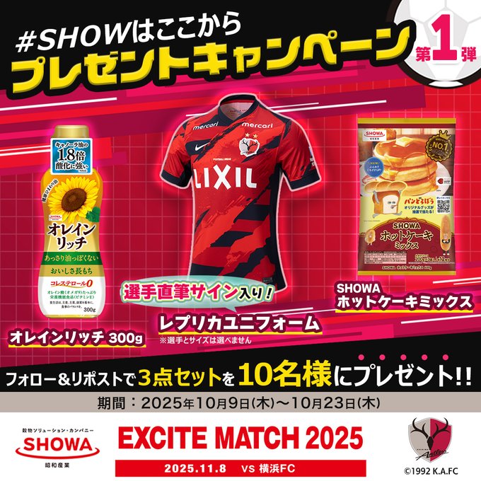 賞品:選手直筆サイン入りレプリカユニフォーム&昭和産業商品セット(10名様)